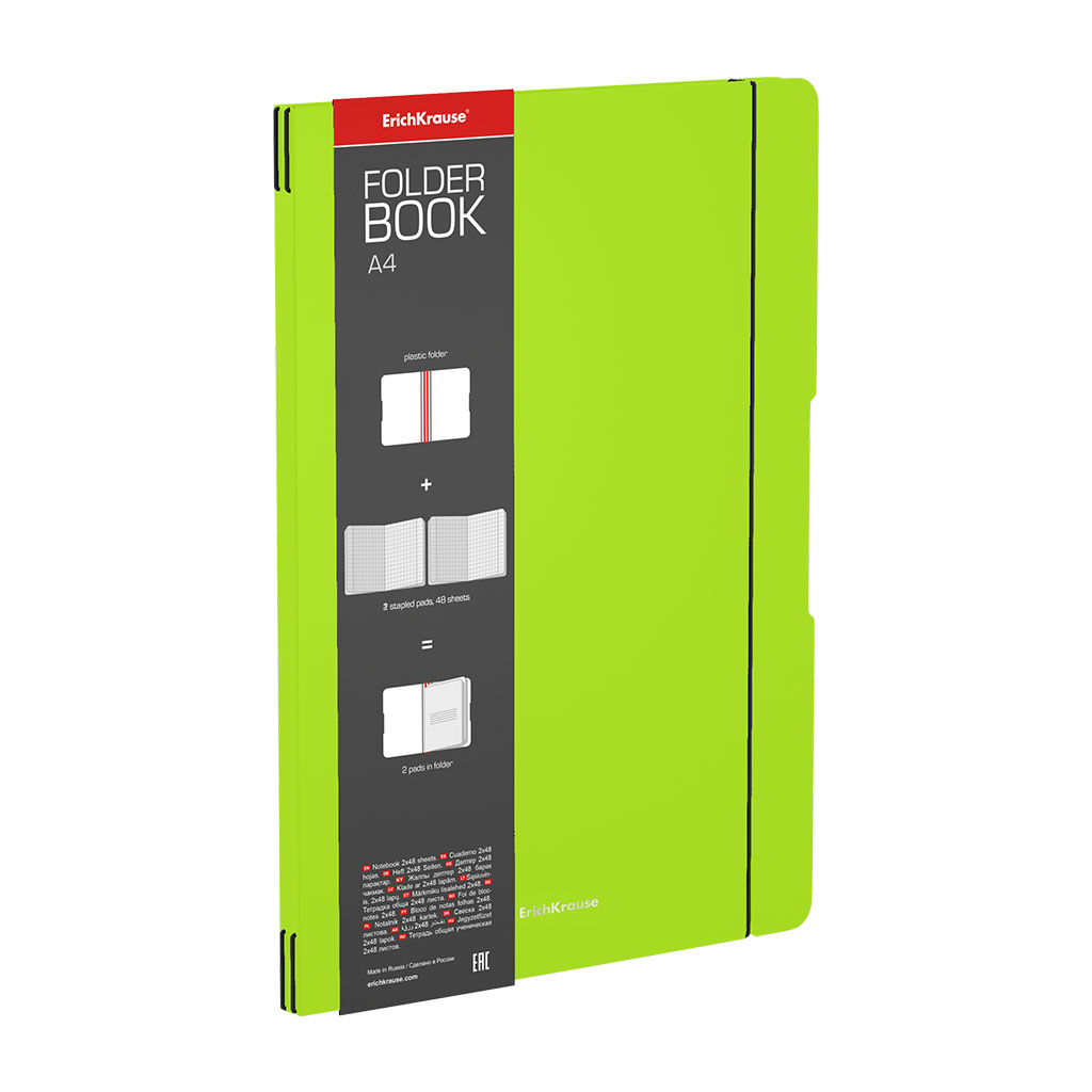 Тетрадь общая ученическая в съемной пластиковой обложке ErichKrause FolderBook Neon, зеленый, А4, 2x