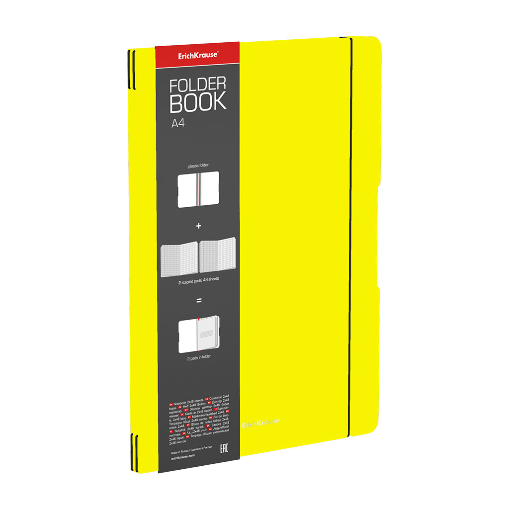 Тетрадь общая ученическая в съемной пластиковой обложке ErichKrause FolderBook Neon, желтый, А4, 2x4