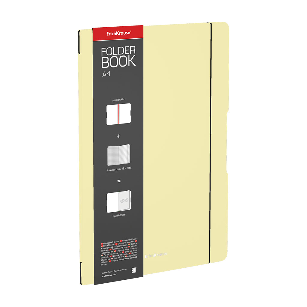 Тетрадь общая ученическая в съемной пластиковой обложке ErichKrause FolderBook Pastel, желтый, А4, 4