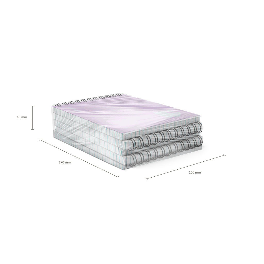 Блокнот формата А6 (102х146 мм). Обложка из высококачественного износостойкого матового пластика с фактурой песок. Стильный дизайн выполнен печатью белой краской. В блоке 80 листов в клетку. Бумага офсетная плотностью 60 г/м2. Цвет линовки - синий. Скругленные уголки обложки. Тип скрепления - спираль. Блокноты упакованы в термоусадочную пленку по 5 штук.