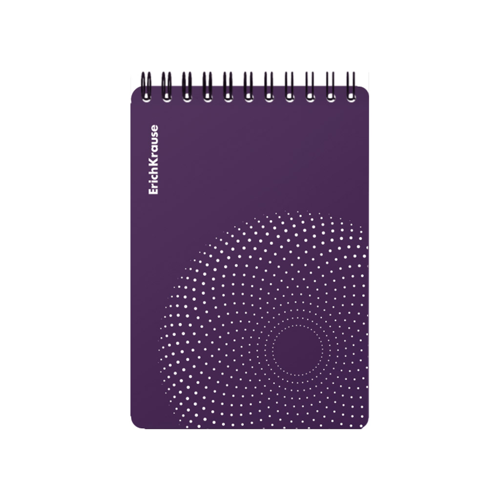Блокнот формата А6 (102х146 мм). Обложка из высококачественного износостойкого матового пластика с фактурой песок с отделкой шелкографией. В блоке 80 листов в клетку. Бумага офсетная плотностью 60 г/м2. Цвет линовки - синий. Скругленные уголки обложки. Тип скрепления - спираль. Блокноты упакованы в термоусадочную пленку по 4 штуки.