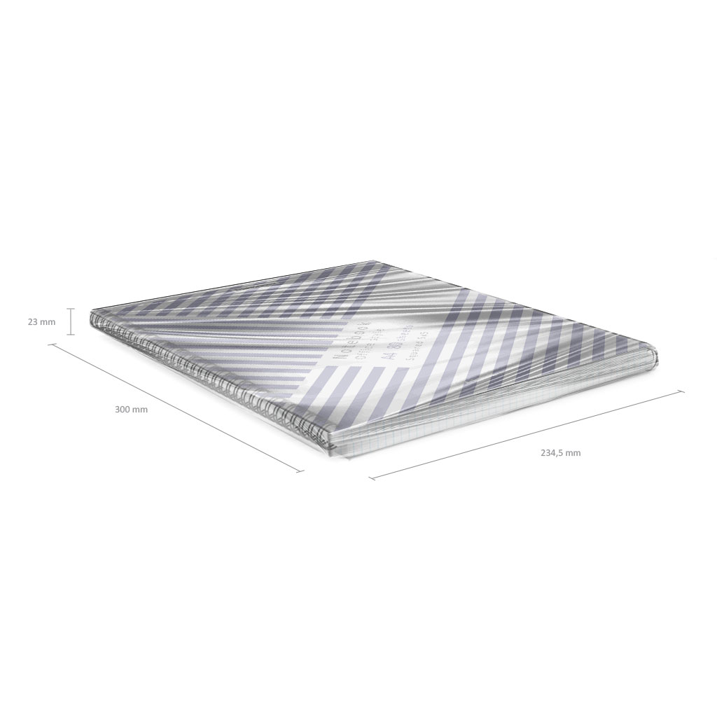 Тетрадь общая формата А4 (210х297 мм). Обложка из высококачественного износостойкого матового пластика с фактурой песок. В блоке 80 листов в клетку. Бумага офсетная плотностью 60 г/м2. Цвет линовки - синий. Скругленные уголки обложки. Тип скрепления - спираль. Тетради одного цвета упакованы в термоусадочную пленку по 2 штуки.