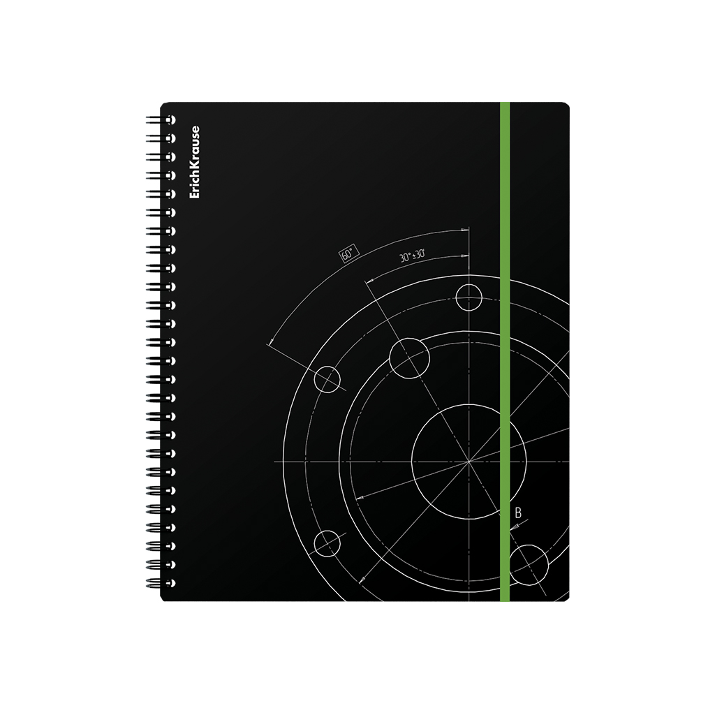 Тетрадь общая с пластиковой обложкой на спирали ErichKrause Draft, черный, А5+, 80 листов, клетка, н