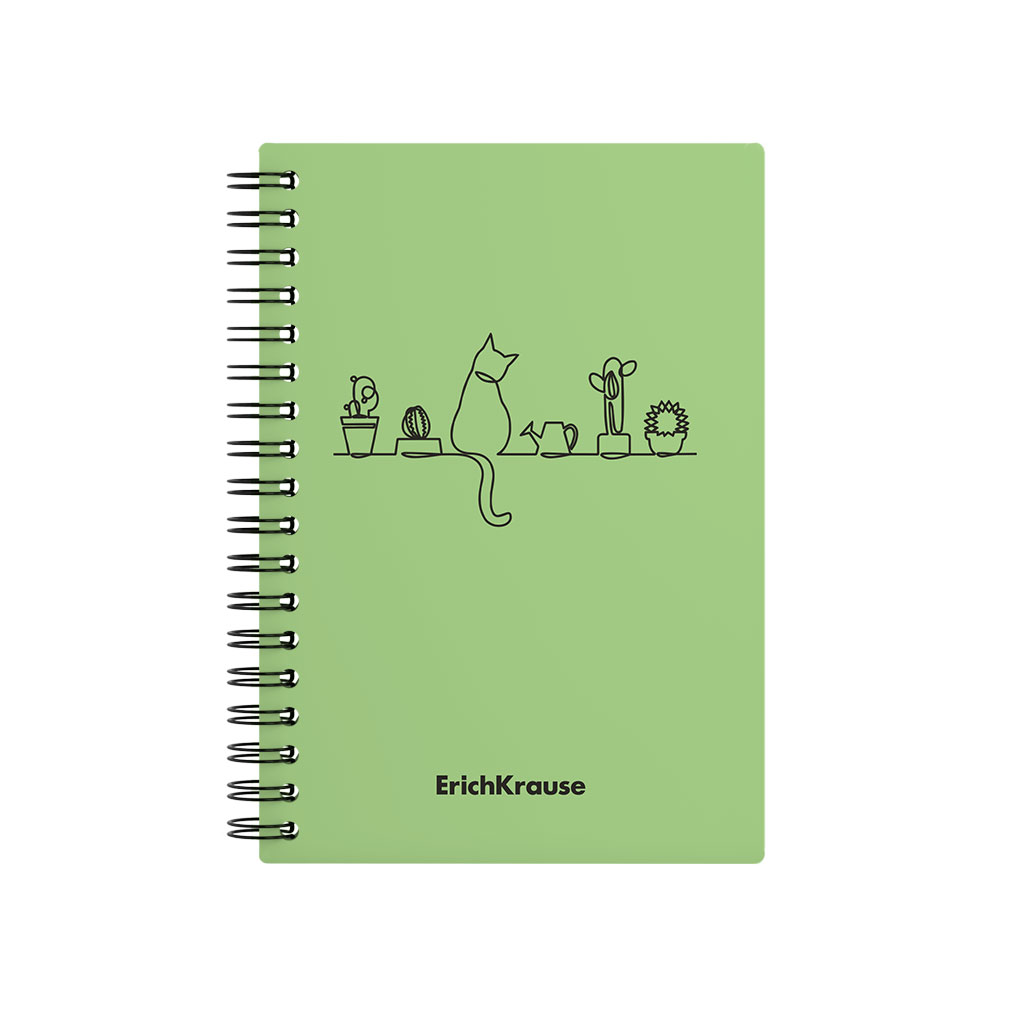 Тетрадь общая формата А6 (102x146 мм). Обложка из высококачественного износостойкого пластика с фактурой "песок". В блоке 80 листов в клетку. Бумага офсетная плотностью 60 г/м2. Цвет линовки - синий. Скругленные уголки обложки. Тип скрепления - спираль. Тетради одного цвета упакованы в термоусадочную пленку по 5 штук.