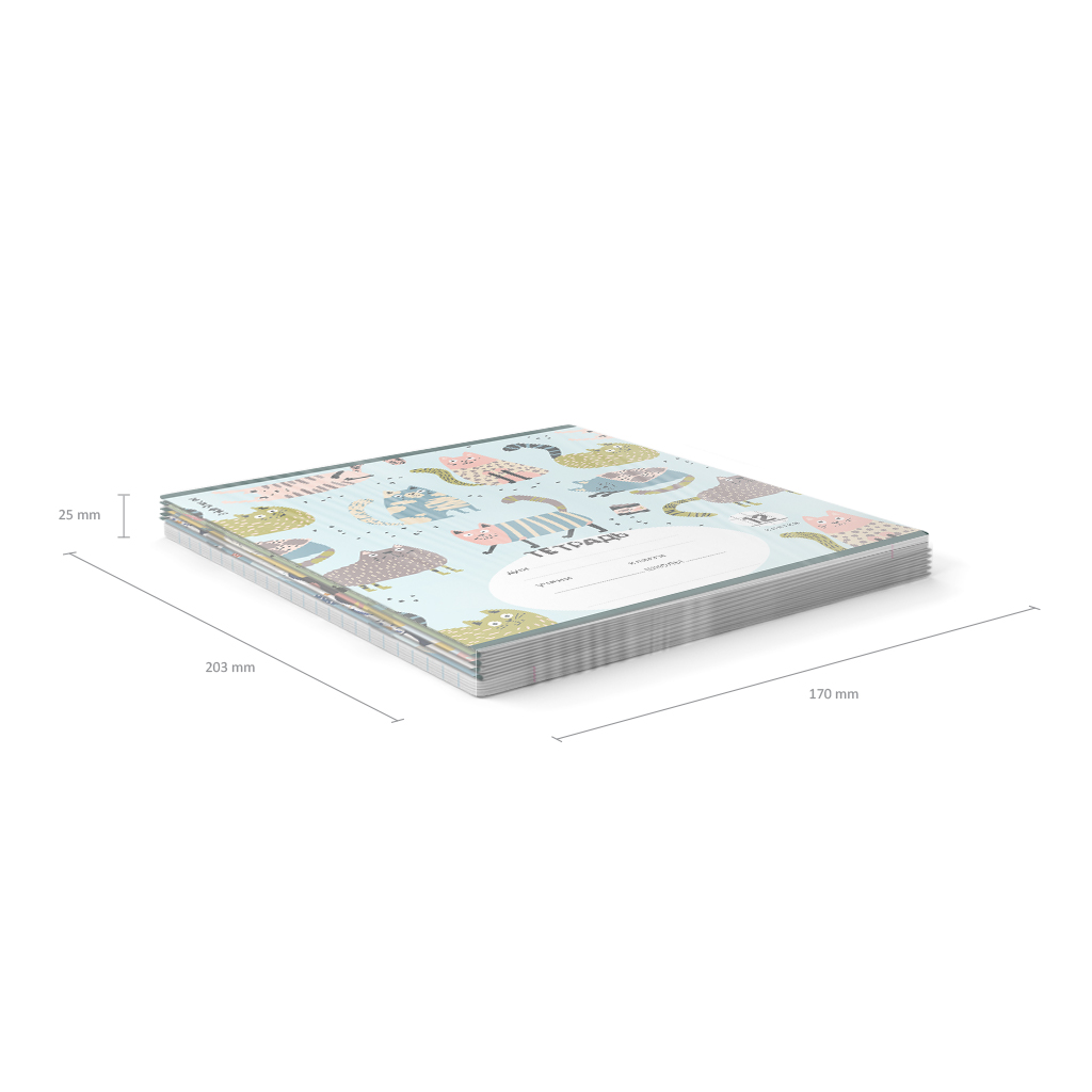 Тетрадь школьная ученическая формата А5+ (170х203 мм). Обложка из высококачественного мелованного картона плотностью 170 г/м2. В блоке 12 листов в клетку с полями. Бумага офсетная плотностью 60 г/м2. Цвет линовки - синий. Скругленные уголки обложки и блока. Тип скрепления - скоба. Тетради разных цветов упакованы в термоусадочную пленку по 10 штук.