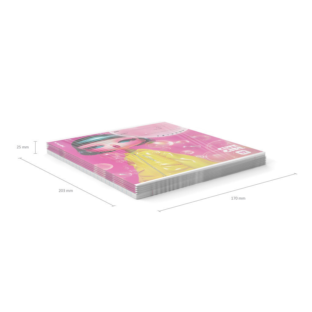 Тетрадь школьная ученическая формата А5+ (170х203 мм). Обложка из высококачественного мелованного картона плотностью 170 г/м2. Отделка обложки - выборочный УФ-лак. В блоке 12 листов в линейку с полями. Бумага офсетная плотностью 60 г/м2. Цвет линовки - синий. Скругленные уголки обложки и блока. Тип скрепления - скоба. Тетради разного дизайна упакованы в термоусадочную пленку по 10 штук.