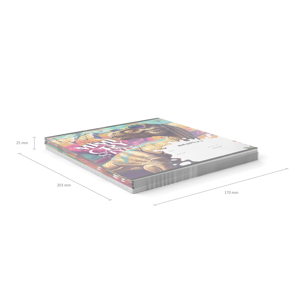 Тетрадь школьная ученическая формата А5+ (170х203 мм). Обложка из высококачественного мелованного картона плотностью 170 г/м2. В блоке 12 листов в клетку с полями. Бумага офсетная плотностью 60 г/м2. Цвет линовки - синий. Скругленные уголки обложки и блока. Тип скрепления - скоба. Тетради разных цветов упакованы в термоусадочную пленку по 10 штук.