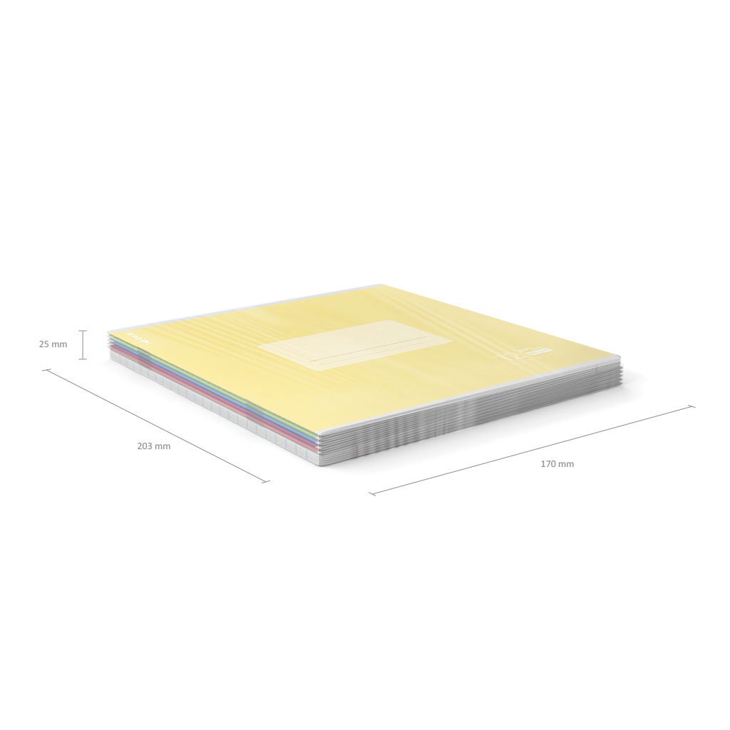 Тетрадь школьная ученическая формата А5+ (170х203 мм). Обложка из высококачественного мелованного картона плотностью 170 г/м2. Отделка обложки - матовая ламинация. В блоке 12 листов в линейку с полями. Бумага офсетная плотностью 80 г/м2. Цвет линовки - синий. Скругленные уголки обложки и блока. Тип скрепления - скоба. Тетради разного дизайна упакованы в термоусадочную пленку по 10 штук.