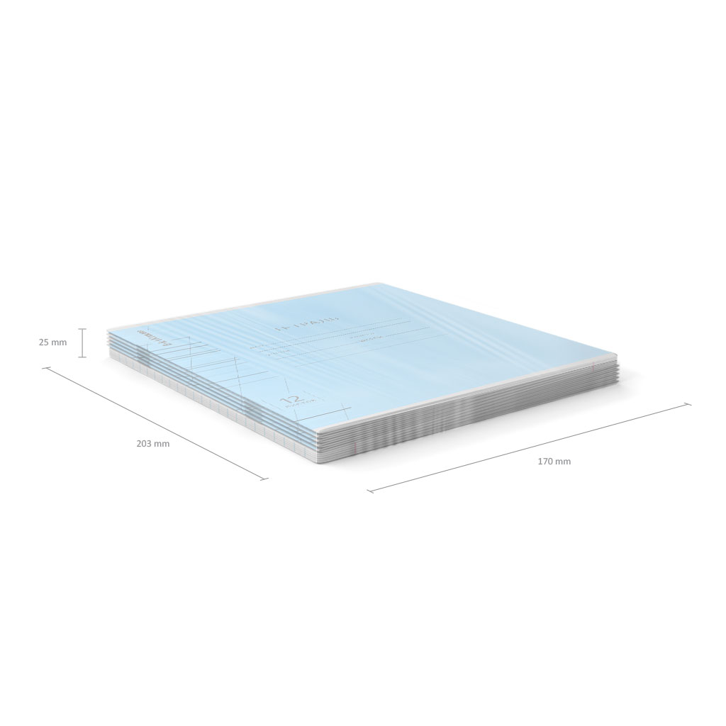 Тетрадь школьная ученическая формата А5+ (170х203 мм). Обложка из высококачественного мелованного картона плотностью 180 г/м2. В блоке 12 листов в косую линейку с полями. Бумага офсетная плотностью 60 г/м2. Цвет линовки - синий. Скругленные уголки обложки и блока. Тип скрепления - скоба. Тетради упакованы в термоусадочную пленку по 10 штук.