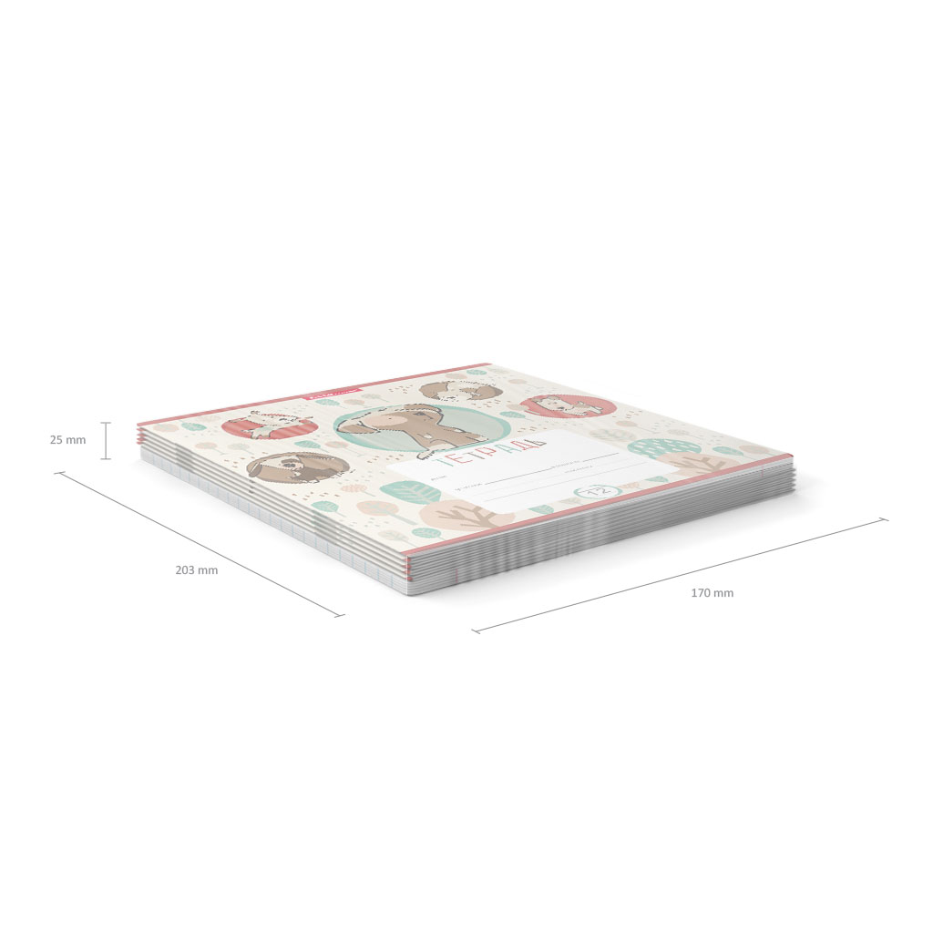Тетрадь школьная ученическая формата А5+ (170х203 мм). Обложка из высококачественного мелованного картона плотностью 170 г/м2. В блоке 12 листов в линейку с полями. Бумага офсетная плотностью 60 г/м2. Цвет линовки - синий. Скругленные уголки обложки и блока. Тип скрепления - скоба. Тетради упакованы в термоусадочную пленку по 10 штук.