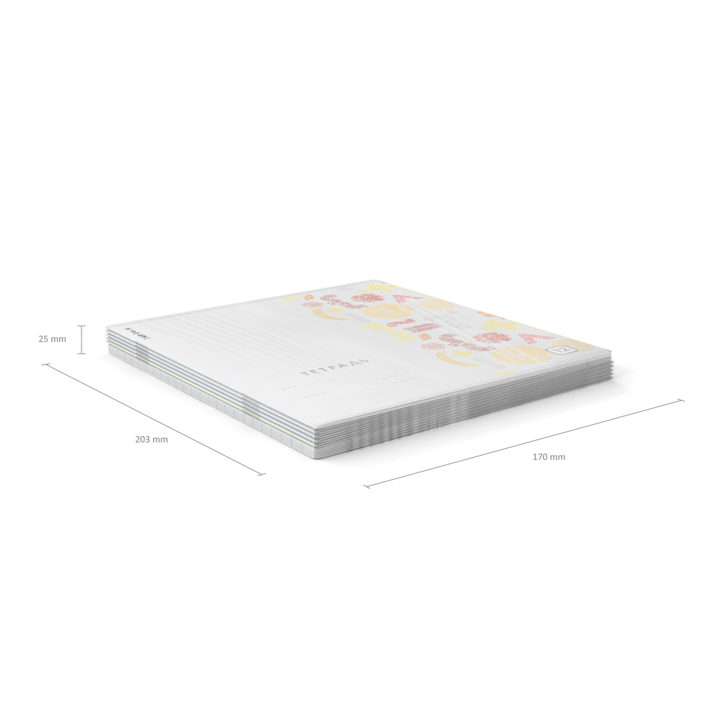 Тетрадь школьная ученическая формата А5+ (170х203 мм). Обложка из высококачественного мелованного картона плотностью 170 г/м2. В блоке 12 листов в линейку с полями. Бумага офсетная плотностью 60 г/м2. Цвет линовки - синий. Скругленные уголки обложки и блока. Тип скрепления - скоба. Тетради разных цветов упакованы в термоусадочную пленку по 10 штук.