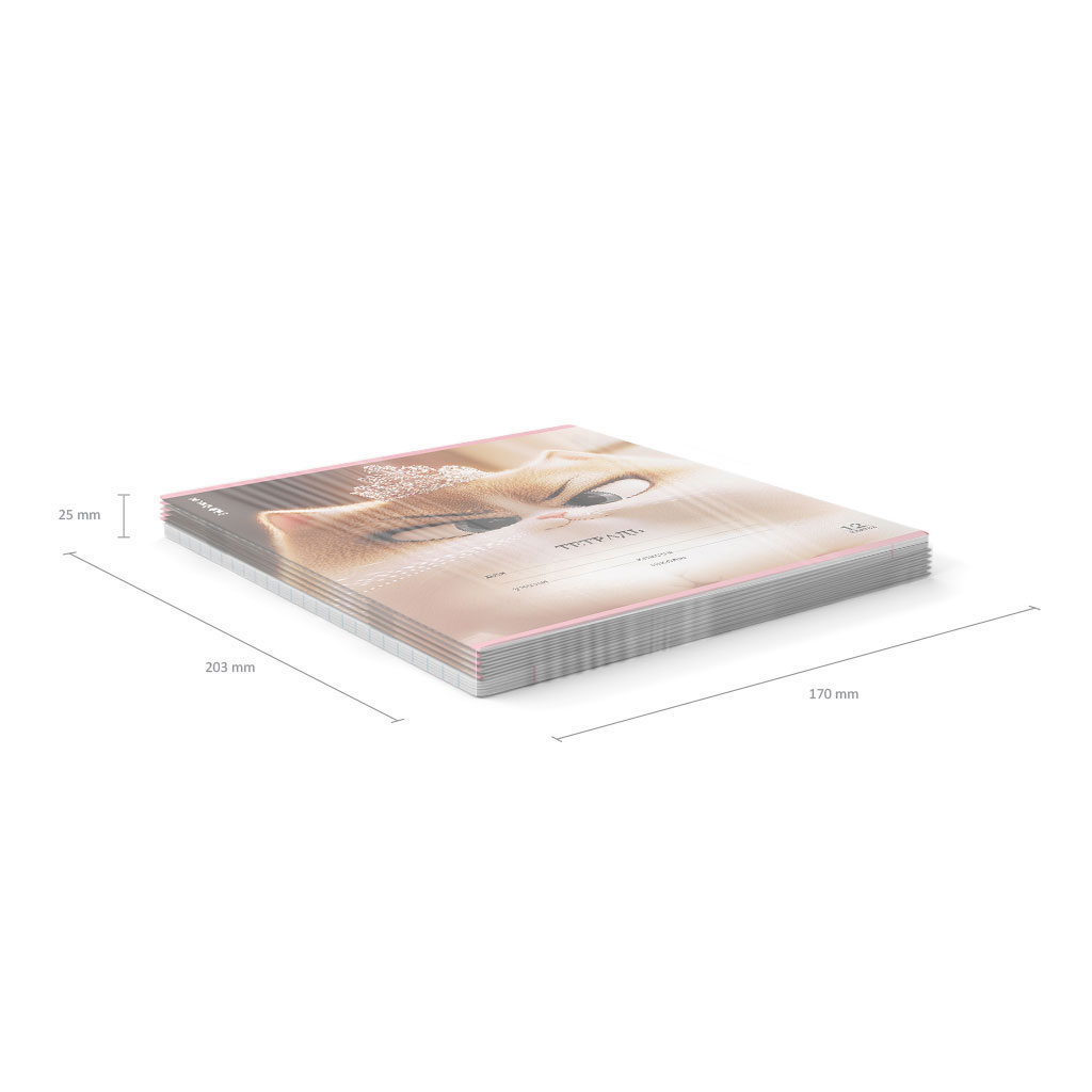 Тетрадь школьная ученическая формата А5+ (170х203 мм). Обложка из высококачественного мелованного картона плотностью 170 г/м2. Отделка обложки - выборочный УФ-лак с глиттером. В блоке 12 листов в клетку с полями. Бумага офсетная плотностью 60 г/м2. Цвет линовки - синий. Скругленные уголки обложки и блока. Тип скрепления - скоба. Тетради разных цветов упакованы в термоусадочную пленку по 10 штук.