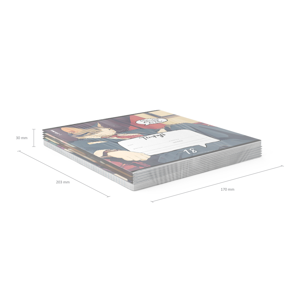 Тетрадь школьная ученическая формата А5+ (170х203 мм). Обложка из высококачественного мелованного картона плотностью 170 г/м2. В блоке 18 листов в линейку с полями. Бумага офсетная плотностью 60 г/м2. Цвет линовки - синий. Скругленные уголки обложки и блока. Тип скрепления - скоба. Тетради разных цветов упакованы в термоусадочную пленку по 10 штук.