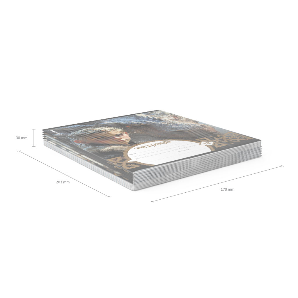 Тетрадь школьная ученическая формата А5+ (170х203 мм). Обложка из высококачественного мелованного картона плотностью 170 г/м2. В блоке 18 листов в линейку с полями. Бумага офсетная плотностью 60 г/м2. Цвет линовки - синий. Скругленные уголки обложки и блока. Тип скрепления - скоба. Тетради упакованы в термоусадочную пленку по 10 штук.
