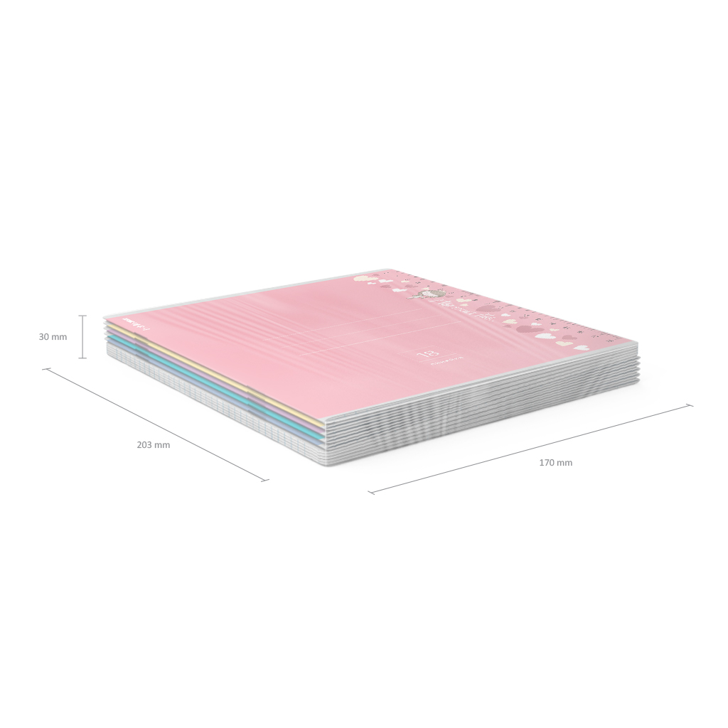 Тетрадь школьная ученическая формата А5+ (170х203 мм). Обложка из высококачественного мелованного картона плотностью 170 г/м2. В блоке 18 листов в линейку с полями. Бумага офсетная плотностью 60 г/м2. Цвет линовки - синий. Скругленные уголки обложки и блока. Тип скрепления - скоба. Тетради разных цветов упакованы в термоусадочную пленку по 10 штук.