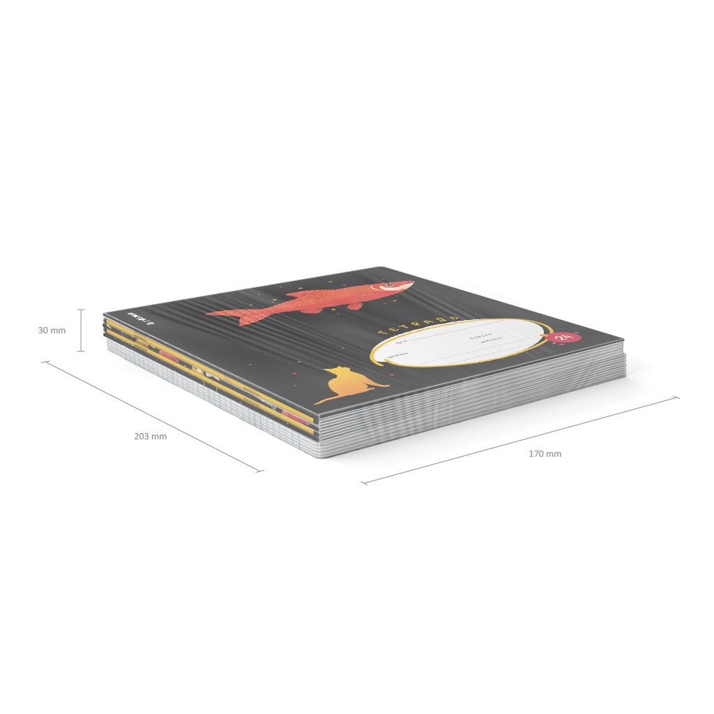Тетрадь школьная ученическая формата А5+ (170х203 мм). Обложка из высококачественного мелованного картона плотностью 170 г/м2. В блоке 24 листа в линейку с полями. Бумага офсетная плотностью 60 г/м2. Цвет линовки - синий. Скругленные уголки обложки и блока. Тип скрепления - скоба. Тетради разного дизайна упакованы в термоусадочную пленку по 10 штук.