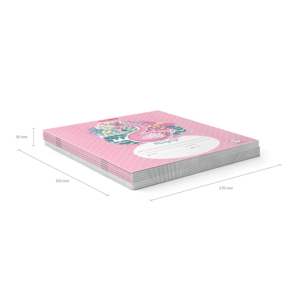 Тетрадь школьная ученическая формата А5+ (170х203 мм). Обложка из высококачественного мелованного картона плотностью 170 г/м2. В блоке 24 листа в линейку с полями. Бумага офсетная плотностью 60 г/м2. Цвет линовки - синий. Скругленные уголки обложки и блока. Тип скрепления - скоба. Тетради упакованы в термоусадочную пленку по 10 штук.