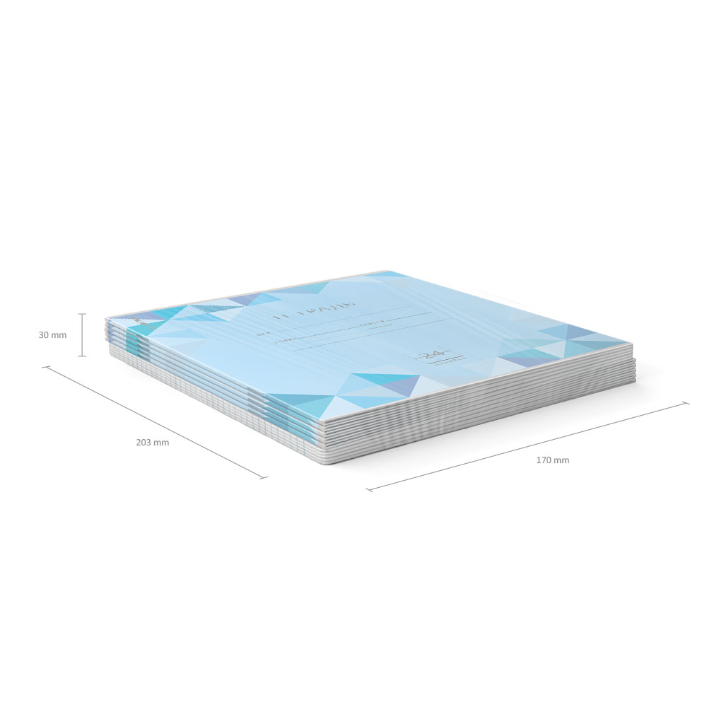 Тетрадь школьная ученическая формата А5+ (170х203 мм). Обложка из высококачественного мелованного картона плотностью 180 г/м2. В блоке 24 листа в линейку с полями. Бумага офсетная плотностью 60 г/м2. Цвет линовки - синий. Скругленные уголки обложки и блока. Тип скрепления - скоба. Тетради одного цвета упакованы в термоусадочную пленку по 10 штук. Товар поставляется в нескольких вариантах цвета без возможности выбора.