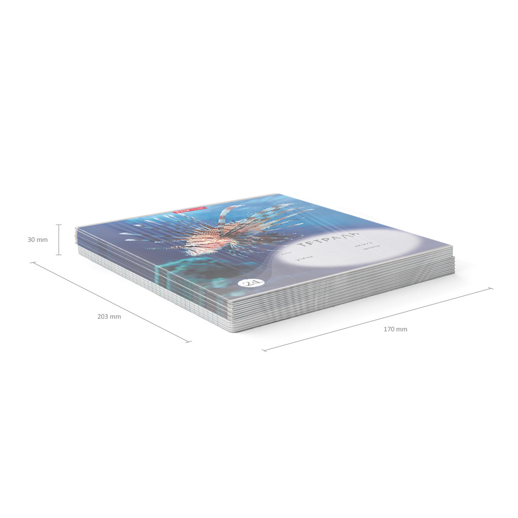 Тетрадь школьная ученическая формата А5+ (170х203 мм). Обложка из высококачественного мелованного картона плотностью 180 г/м2. В блоке 18 листов в линейку с полями. Бумага офсетная плотностью 60 г/м2. Цвет линовки - синий. Скругленные уголки обложки и блока. Тип скрепления - скоба. Тетради упакованы в термоусадочную пленку по 10 штук.