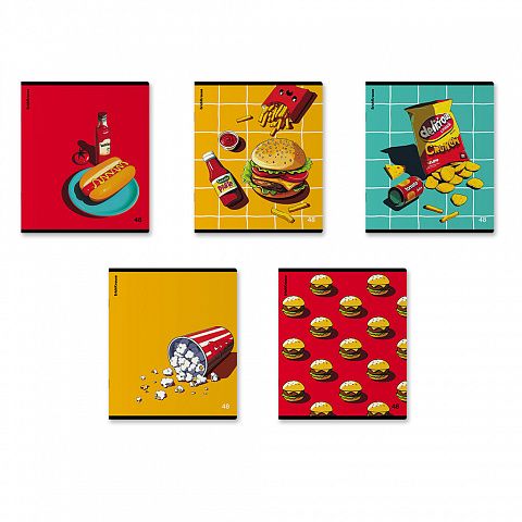 Тетрадь общая ученическая формата А5+ (170х203 мм). Обложка из высококачественного мелованного картона плотностью 190 г/м2. Отделка - твин-лак. В блоке 48 листов в клетку с полями. Бумага офсетная плотностью 60 г/м2. Цвет линовки - синий. Скругленные уголки обложки и блока. Тип скрепления - скоба.Тетради разного дизайна упакованы в термоусадочную пленку по 5 штук.