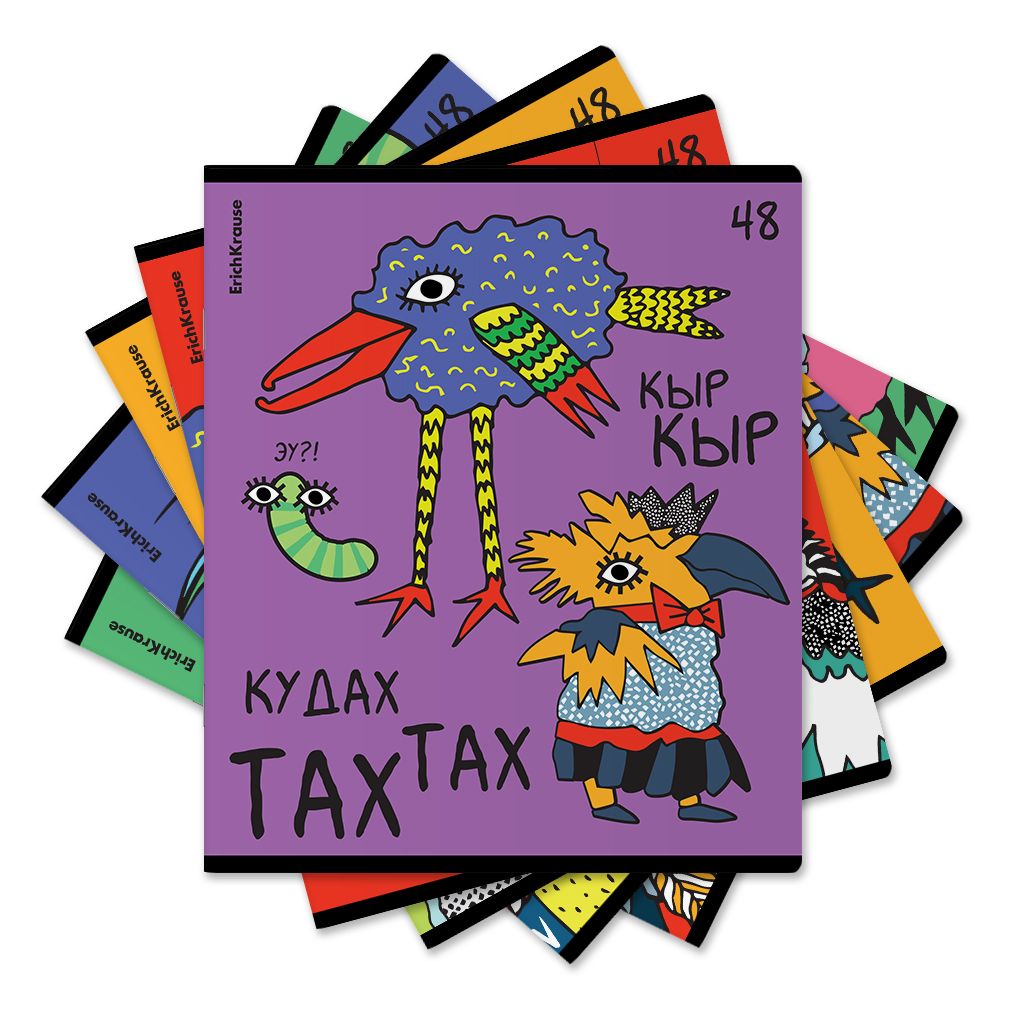 Тетрадь общая ученическая формата А5+ (170х203 мм). Обложка из высококачественного мелованного картона плотностью 190 г/м2. Отделка - выборочный УФ-лак. В блоке 48 листов в клетку с полями. Бумага офсетная плотностью 60 г/м2. Цвет линовки - синий. Скругленные уголки обложки и блока. Тип скрепления - скоба. Тетради разного дизайна упакованы в термоусадочную пленку по 5 штук.