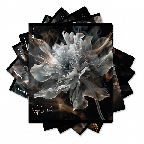 Тетрадь общая ученическая формата А5+ (170х203 мм). Обложка из высококачественного мелованного картона плотностью 190 г/м2. Отделка - soft-touch ламинация, выборочный УФ-лак. В блоке 48 листов в клетку с полями. Бумага офсетная плотностью 60 г/м2. Цвет линовки - синий. Скругленные уголки обложки и блока. Тип скрепления - скоба.Тетради разного дизайна упакованы в термоусадочную пленку по 5 штук.
