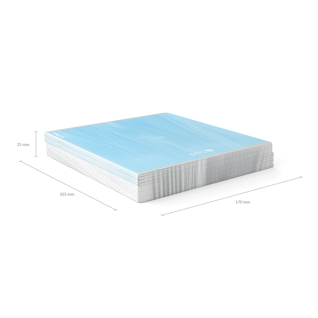 Тетрадь общая формата А5+ (170х203 мм). Обложка из высококачественного мелованного картона плотностью 190 г/м2. В блоке 48 листов в клетку с полями. Бумага офсетная плотностью 60 г/м2. Цвет линовки - синий. Скругленные уголки обложки и блока. Тип скрепления - скоба. Тетради разных цветов упакованы в термоусадочную пленку по 5 штук.