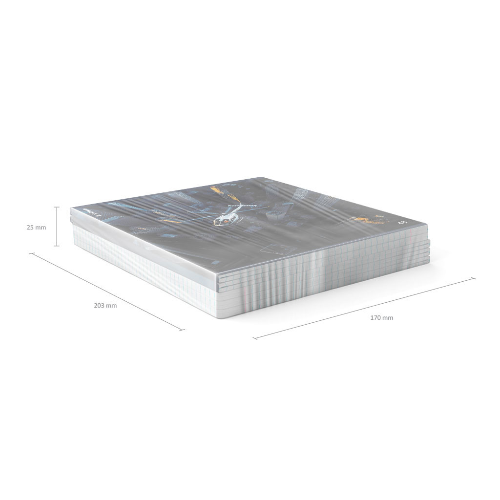 Тетрадь общая ученическая формата А5+ (170х203 мм). Обложка из высококачественного мелованного картона плотностью 190 г/м2. Отделка - глянцевая ламинация. В блоке 48 листов в клетку с полями. Бумага офсетная плотностью 60 г/м2. Цвет линовки - синий. Скругленные уголки обложки и блока. Тип скрепления - скоба. Тетради разного дизайна упакованы в термоусадочную пленку по 5 штук.