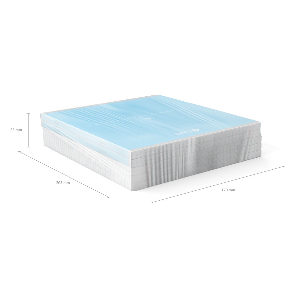 Тетрадь общая формата А5+ (170х203 мм). Обложка из высококачественного мелованного картона плотностью 190 г/м2. В блоке 96 листов в клетку с полями. Бумага офсетная плотностью 60 г/м2. Цвет линовки - синий. Скругленные уголки обложки и блока. Тип скрепления - скоба. Тетради разных цветов упакованы в термоусадочную пленку по 5 штук.