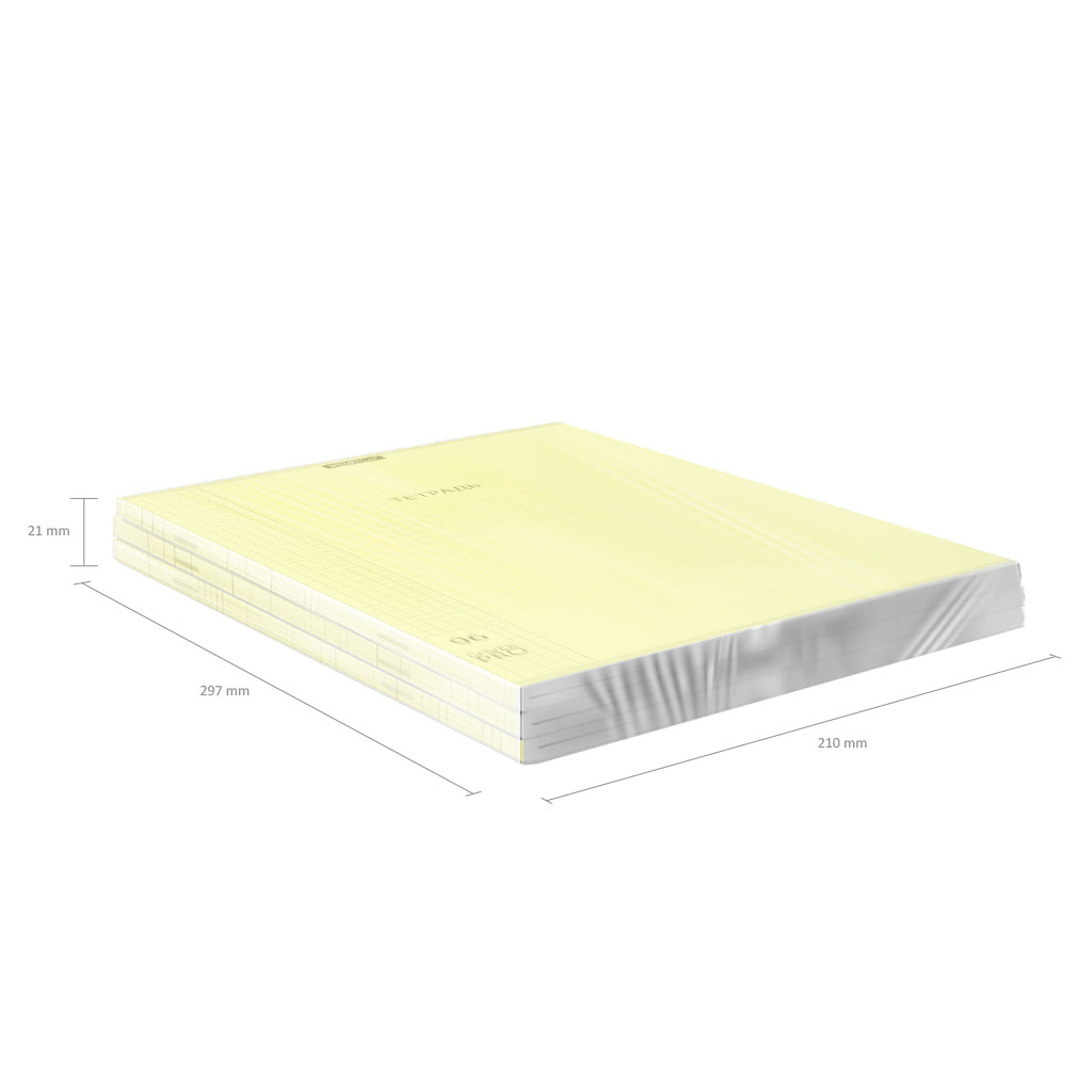 Тетрадь общая ученическая формата А4 (210x297 мм). Двойная обложка: внешняя выполнена из высококачественного износостойкого цветного глянцевого пластика с фактурой зеркало, внутренняя из офсетной бумаги. В блоке 96 листов в клетку. Бумага офсетная плотностью 60 г/м2. Цвет линовки синий. Скругленные уголки обложки и блока. Тип скрепления скоба. Тетради упакованы в термоусадочную пленку по 5 штук.