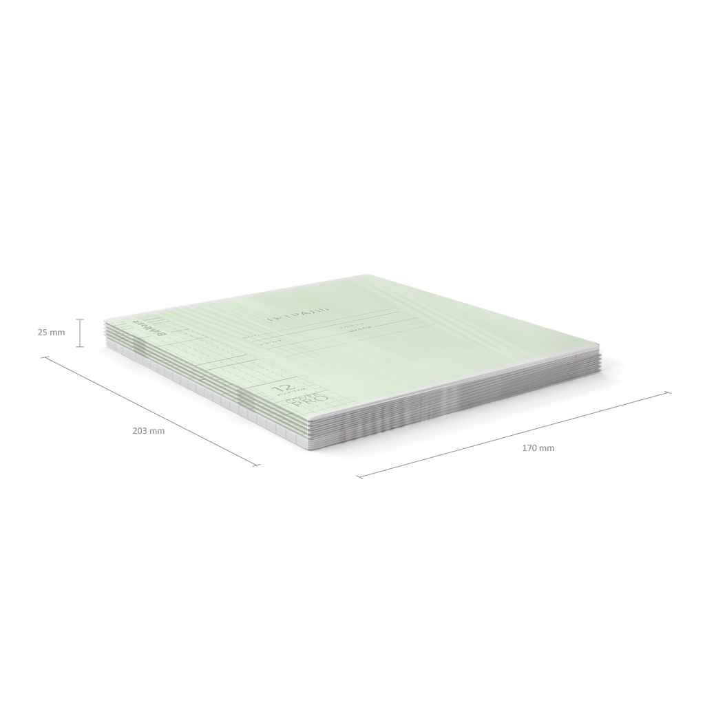 Тетрадь школьная ученическая формата А5+ (170x203 мм). Двойная обложка: внешняя выполнена из высококачественного износостойкого прозрачного пластика с фактурой апельсиновая корка, внутренняя из качественной мелованной бумаги. В блоке 12 листов. Бумага офсетная плотностью 60 г/м2. Цвет линовки синий. Скругленные уголки обложки и блока. Тип скрепления скоба. Тетради упакованы в термоусадочную пленку по 10 штук, из них 6 тетрадей в клетку, 4 в линейку.