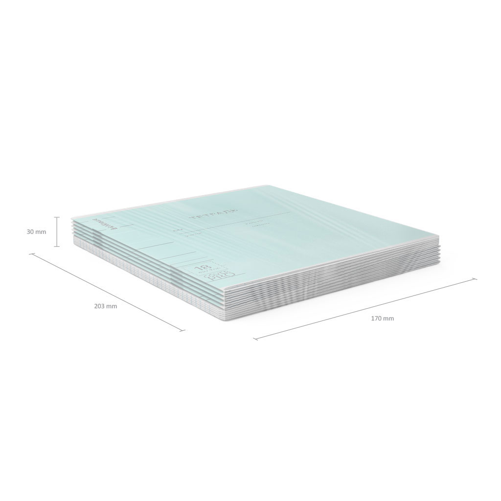 Тетрадь школьная ученическая формата А5+ (170x203 мм). Двойная обложка: внешняя выполнена из высококачественного износостойкого прозрачного пластика с фактурой апельсиновая корка, внутренняя из качественной мелованной бумаги. В блоке 18 листов в линейку. Бумага офсетная плотностью 60 г/м2. Цвет линовки синий. Скругленные уголки обложки и блока. Тип скрепления скоба. Тетради упакованы в термоусадочную пленку по 10 штук.
