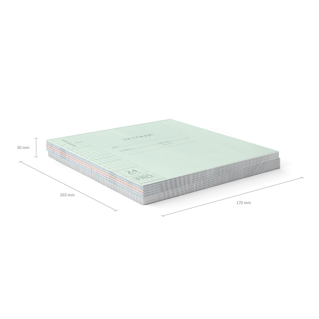 Тетрадь школьная ученическая формата А5+ (170x203 мм). Двойная обложка: внешняя выполнена из высококачественного износостойкого цветного пластика с фактурой песок, внутренняя из офсетной бумаги. В блоке 24 листа в клетку. Бумага офсетная плотностью 60 г/м2. Цвет линовки синий. Скругленные уголки обложки и блока. Тип скрепления скоба. 10 тетрадей пяти разных цветов упакованы в термоусадочную пленку по 2 штуки каждого цвета.