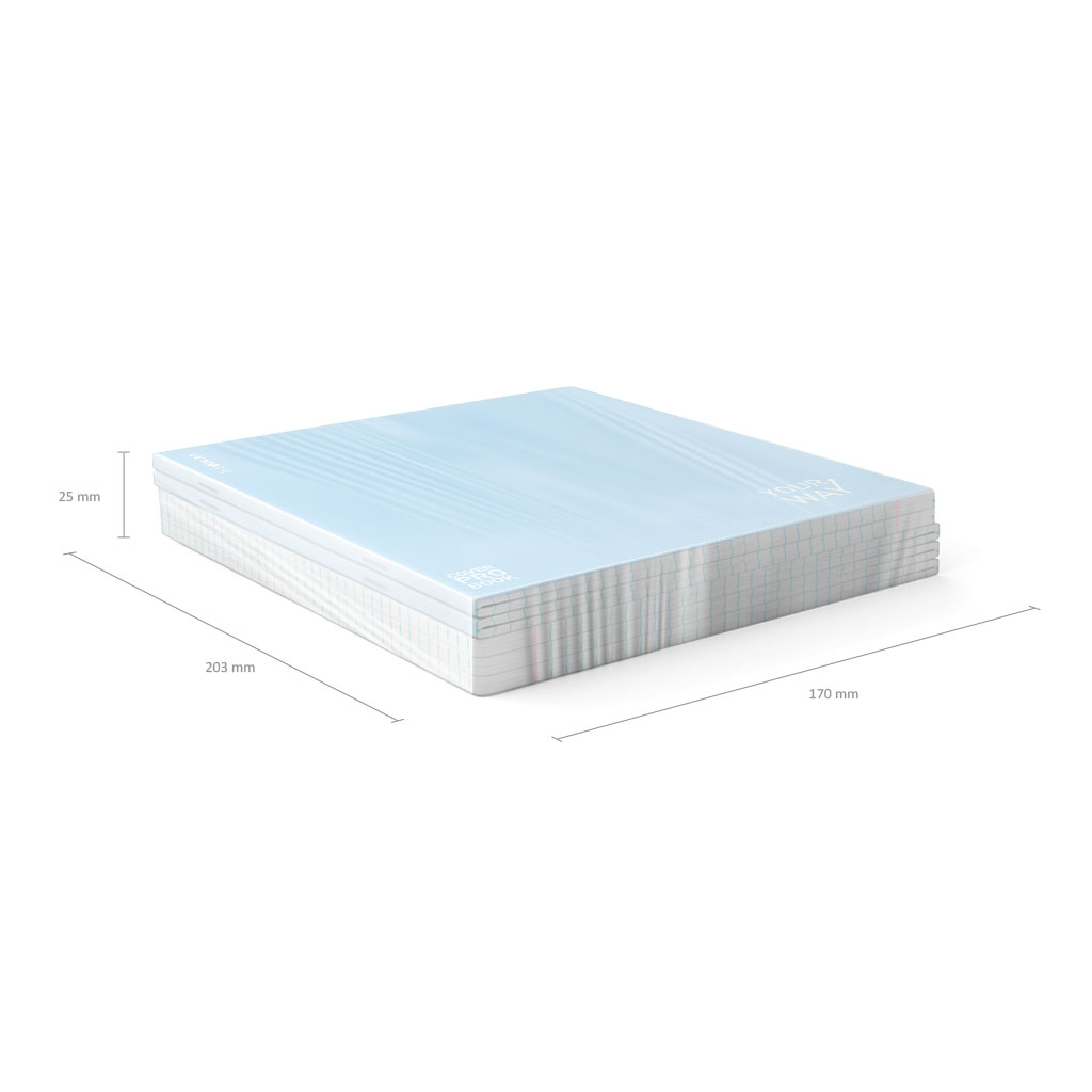 Тетрадь общая ученическая формата А5+ (170x203 мм). Обложка выполнена из высококачественного износостойкого матового пластика с фактурой песок и печатью белой краской. В блоке 48 листов в клетку. Бумага офсетная плотностью 60 г/м2. Цвет линовки синий. Скругленные уголки обложки и блока. Тип скрепления скоба. Тетради разного дизайна упакованы в термоусадочную пленку по 5 штук.