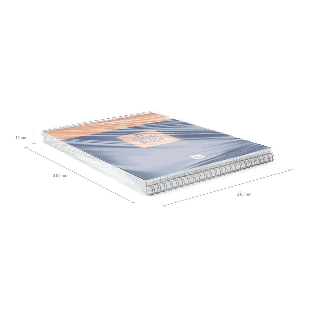 Блокнот формата А4 (210х297 мм). Обложка из высококачественного мелованного картона плотностью 190 г/м2. Жесткая подложка 340 г/м2. В блоке 60 листов в клетку. Бумага офсетная плотностью 60 г/м2. Цвет линовки - синий. Тип скрепления - спираль. Блокноты упакованы в термоусадочную пленку по 2 штуки.