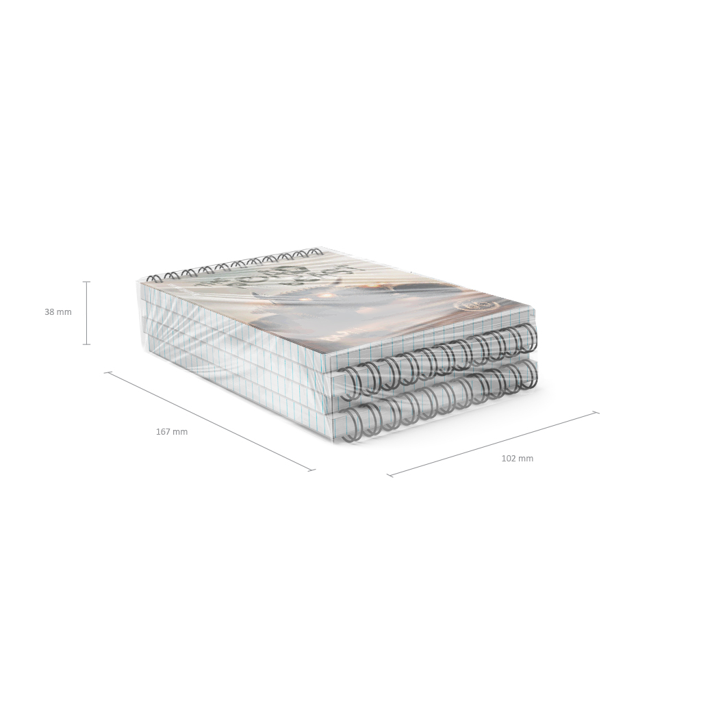 Блокнот формата А6 (100х146 мм). Обложка из высококачественного мелованного картона плотностью 190 г/м2. Плотная подложка 340 г/м2. В блоке 80 листов в клетку. Бумага офсетная плотностью 60 г/м2. Цвет линовки - синий. Тип скрепления - спираль. Блокноты разных цветов упакованы в термоусадочную пленку по 4 штуки.