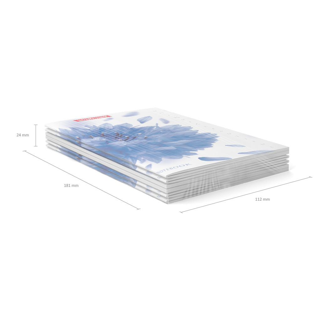 Записная книга размера 112х181 мм. Обложка из высококачественного мелованного картона плотностью 190 г/м2. В блоке 32 листа. Бумага офсетная белого цвета плотностью 60 г/м2. Линовка в точку. Цвет линовки черный. Тип скрепления скоба. Записные книги упакованы в термоусадочную пленку по 6 штук.