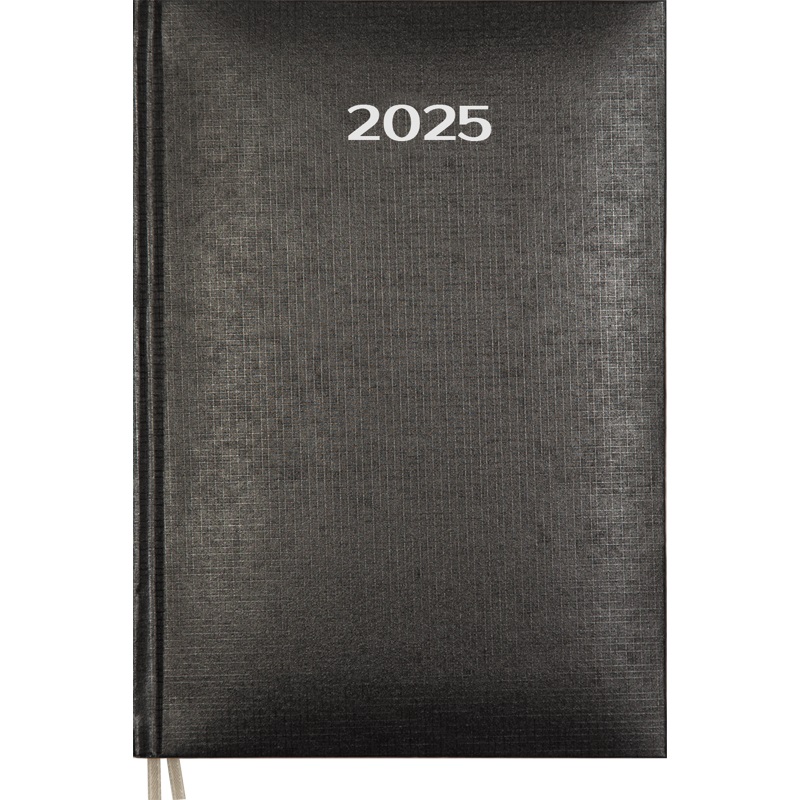Ежедневник датированный 2025 "Attomex. Lancaster" A5 (145 ммx205 мм) 336 стр, белая бумага 70 г/м, печать в 1 краску, твердая обложка из балакрона с поролоном, тиснение фольгой, перфорация, 2 ляссе, в термоусадочной пленке, черный