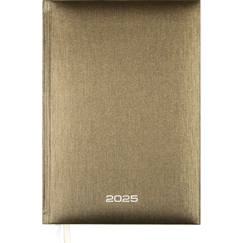 Ежедневник датированный 2025 "Attomex. Regent" A5 (145 ммx205 мм) 336 стр, белая бумага 70 г/м, печать в 1 краску, твердая обложка из бумвинила с поролоном, тиснение фольгой, 1 ляссе, в термоусадочной пленке, коричневый металлизированный