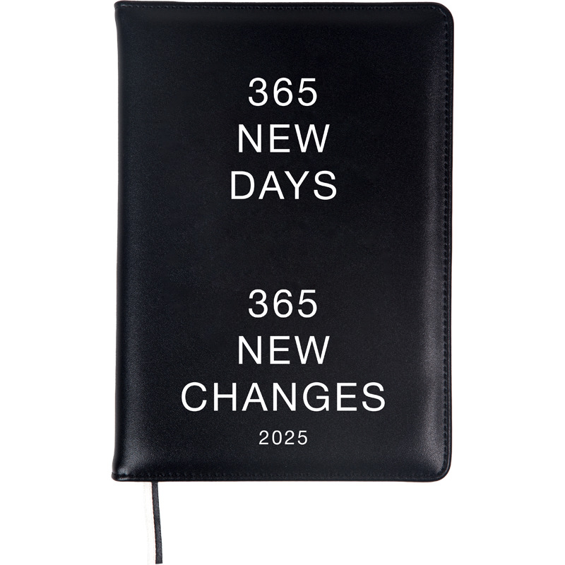 Ежедневник датированный 2025 "deVENTE. Message. 365 NEW DAYS" A5 (145 ммx205 мм) 336 стр, белая бумага 70 г/м, печать в 2 краски, твердая обложка из искусственной кожи с поролоном, шелкогафия, черный форзац, отсрочка, перфорация, закругленные уголки, 2 ляссе, в термоусадочной пленке, черный