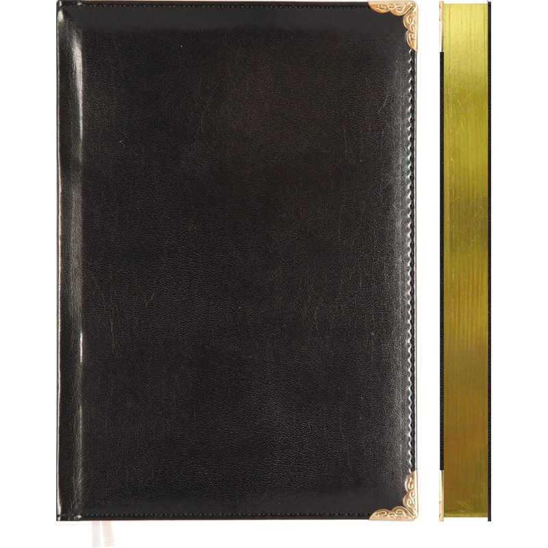 Ежедневник датированный 2026 "deVENTE. Bellagio" A5 (145 ммx205 мм) 336 стр, белая бумага 70 г/м с золотым срезом, печать в 2 краски, твердая обложка из искусственной кожи с поролоном, отстрочка, термо тиснение, металлические уголки, перфорация, 2 ляссе, в подарочной коробке, черный
