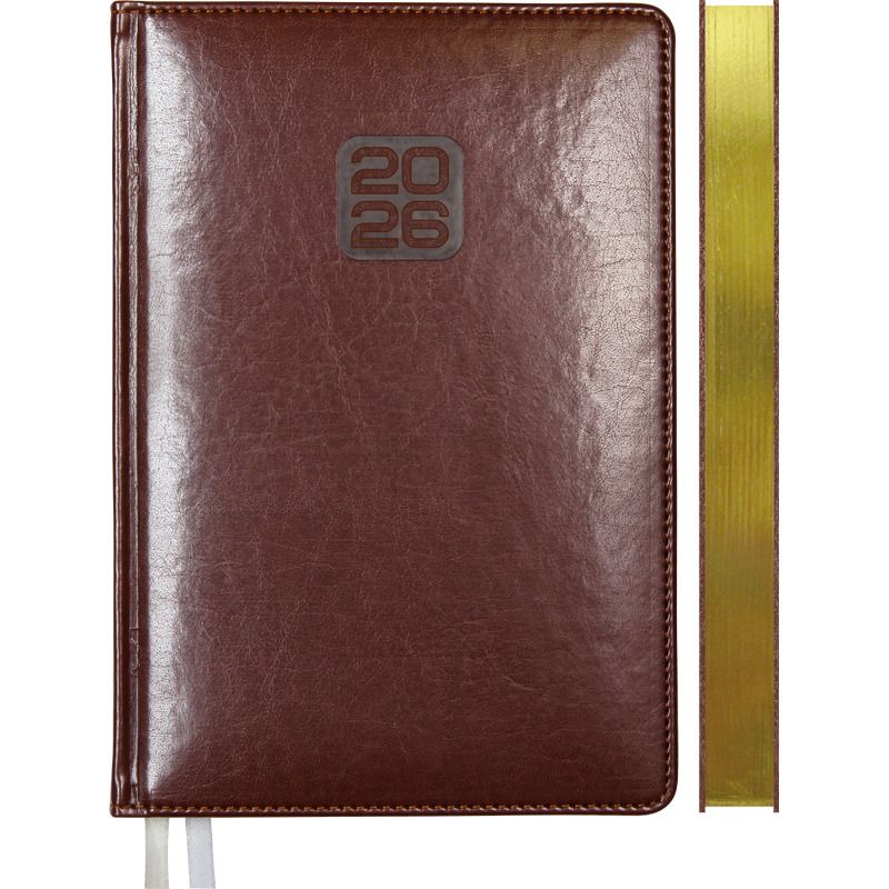 Ежедневник дат. 2026г А5 deVENTE Bravo 336стр.,коричневый, тв.обл.,кожзам.,золотой срез