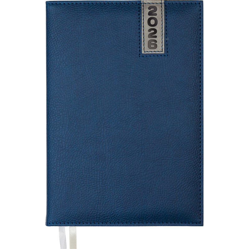 Ежедневник датированный 2026 "deVENTE. Vertical" A5 (145 ммx205 мм) 336 стр, белая бумага 70 г/м, печать в 2 краски, твердая обложка из искусственной кожи с поролоном, отстрочка, термо тиснение, перфорация, 2 ляссе, в термоусадочной пленке, синий