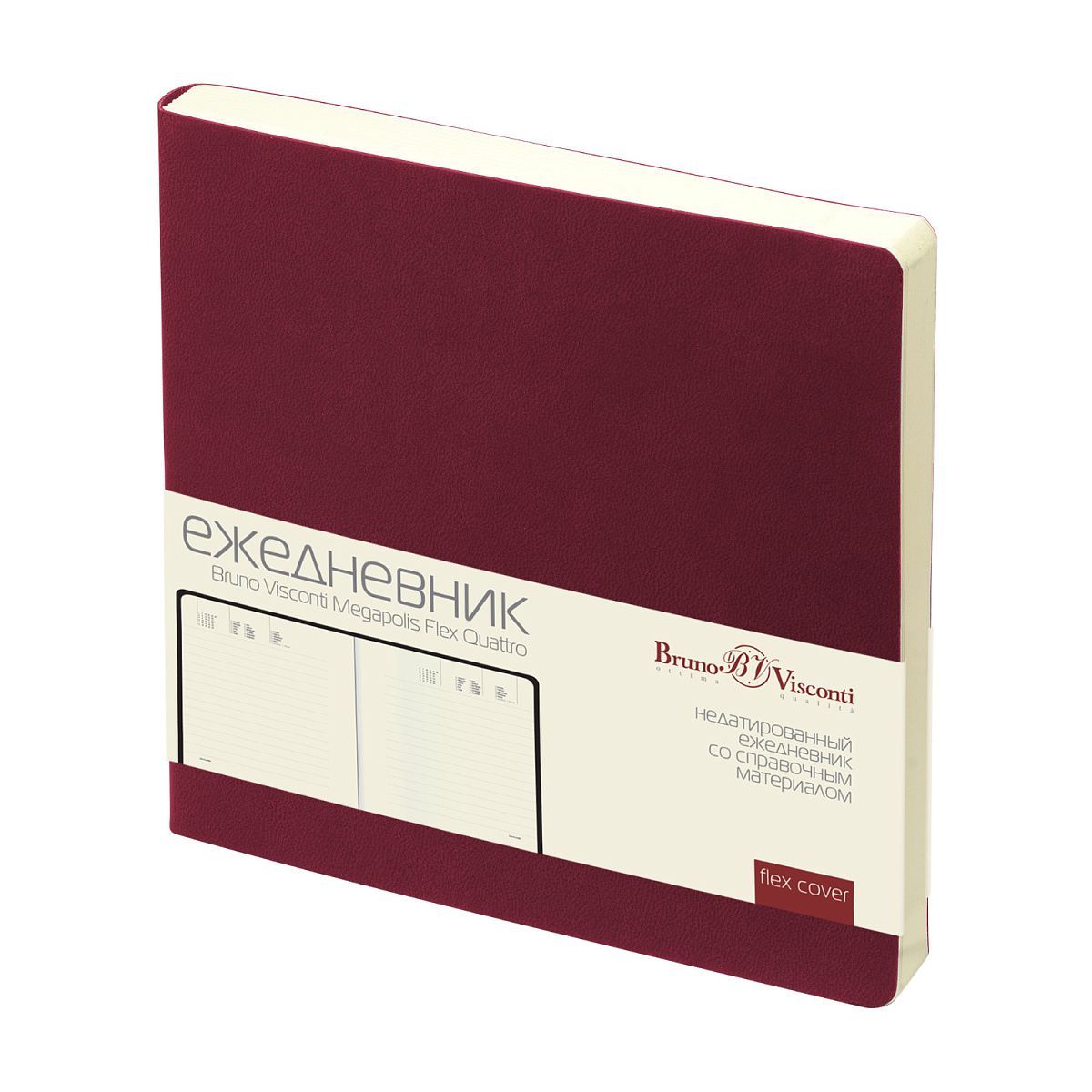 Ежедневник недат. 145*145мм 136л., мягк.пер., иск.кожа "Megapolis Quattro flex. Бордовый" софт тач
