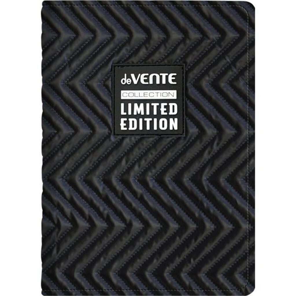 Ежедневник недатированный "deVENTE. Tailor" A5 (145 ммx205 мм) 320 стр, белая бумага 70 г/м?, печать в 2 краски, твердая обложка из стеганной ткани с поролоном, объемная аппликация rubber patch, отстрочка, перфорация, закругленные уголки, 2 ляссе, в подарочной коробке, черный