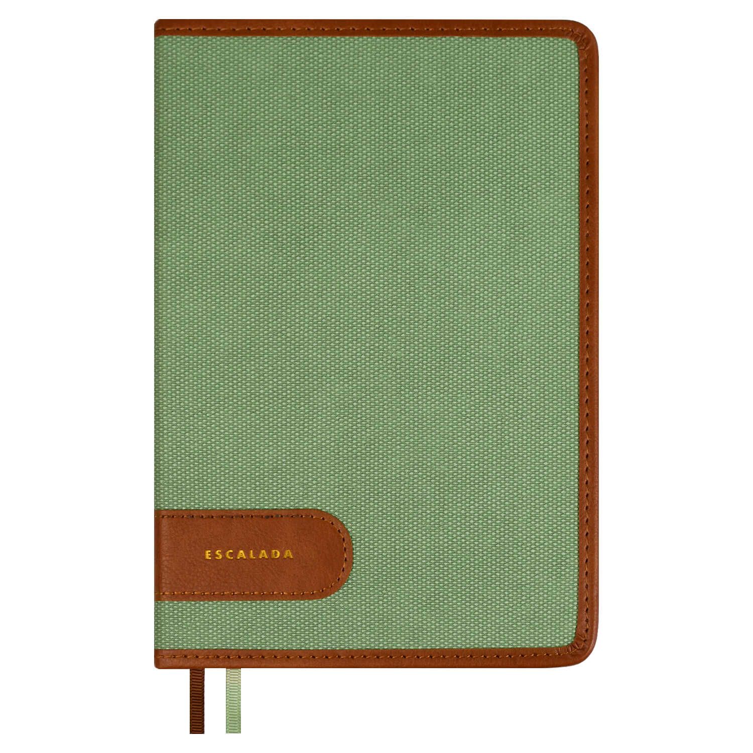 Ежедневник недатированный ESCALADA, А5, 160 л., арт. 70639/ 15 ПИКЕ ОЛИВКОВЫЙ (кожзам: 146х211 мм, твёрдый переплёт, материал обложки: искусственная кожа "Пике"; способ крепления блока: ниткошвейный; декор: аппликация из искусственной кожи, тиснение фольгой; вн. блок: 160 л., PREMIUM-офсет кремового цвета 70 г/м, печать в одну краску (линия), справочный материал: есть; перфорация углов блока: нет; отделка среза: окрашивание пантоном; закладка/-и: два ляссе, каптал: есть; форзац: печать пантоном, тиснение фольгой, особенности: комбинированные материалы; персонализация возможна: да; индивидуальная упаковка: промостикер + ПЭТ-пакет)