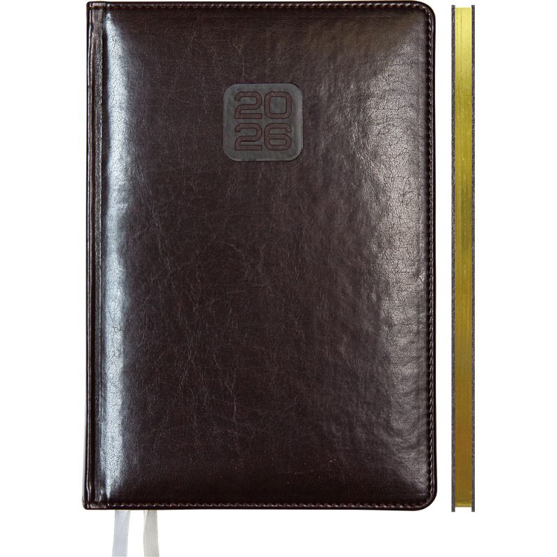Еженедельник датированный 2026 "deVENTE. Bravo" A4 (210 ммx290 мм) 128 стр, белая бумага 70 г/м с золотым срезом, печать в 2 краски, твердая обложка из искусственной кожи с поролоном, отстрочка, термо тиснение, перфорация, закругленные уголки, 2 ляссе, в термоусадочной пленке, бордовый