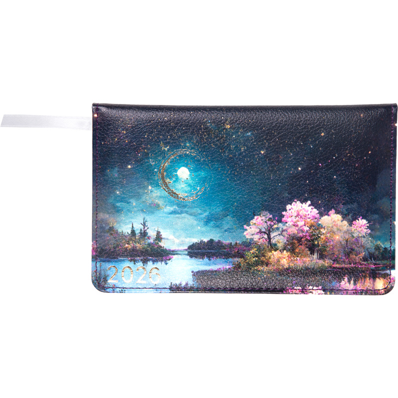 Планинг карманный датированный 2026 "deVENTE. Nature" (155 ммx95 мм) 128 стр, белая бумага 70 г/м, печать в 2 краски, твердая обложка из искусственной кожи с поролоном, цветная печать, тиснение фольгой, черный форзац, отсрочка, закругленные уголки, 1 ляссе, в термоусадочной пленке, темно-синий с дизайном
