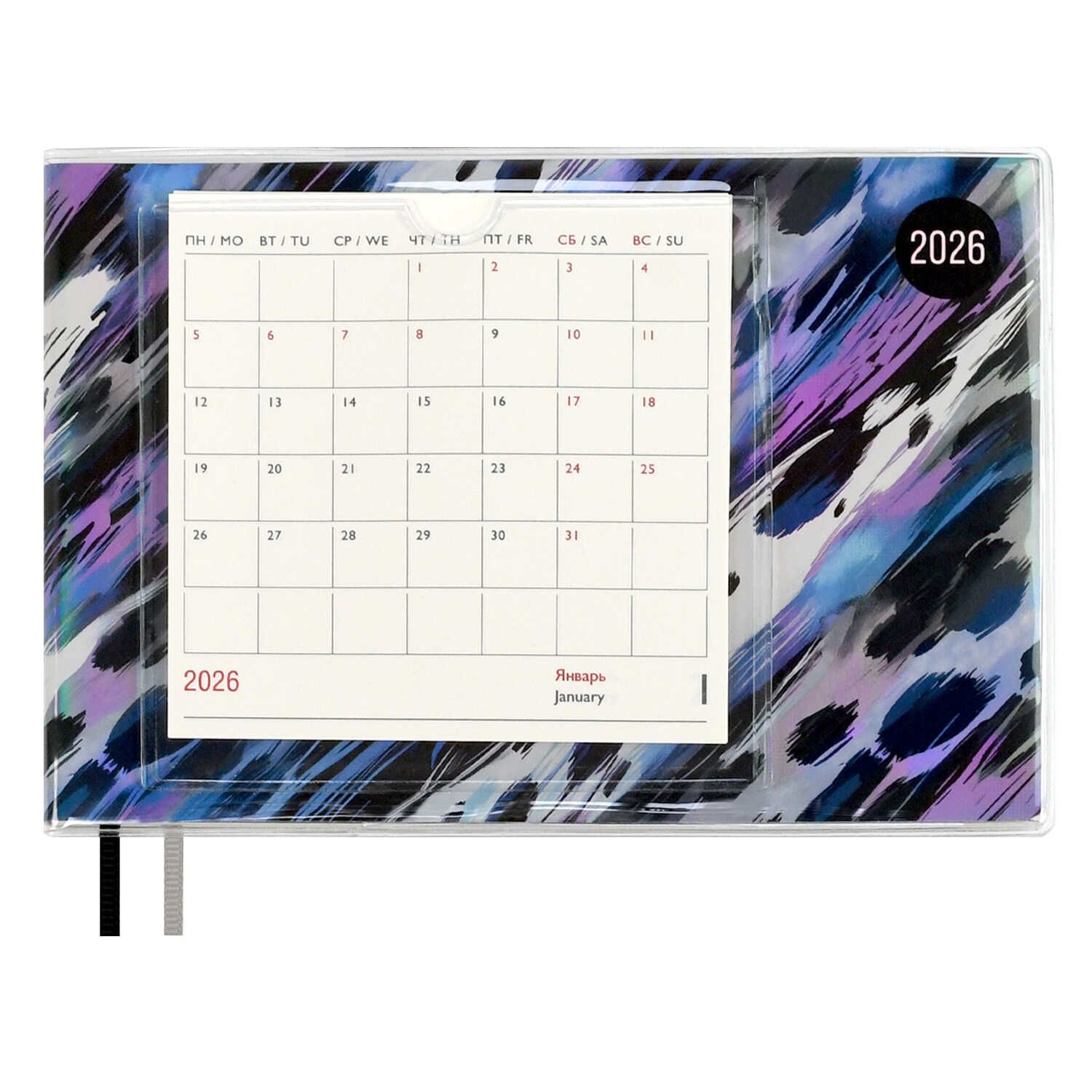 Планинг дат. 2026г 180*127мм 64л., ПВХ, мягк.пер. "Леопард голубой" +ПОДАРОК