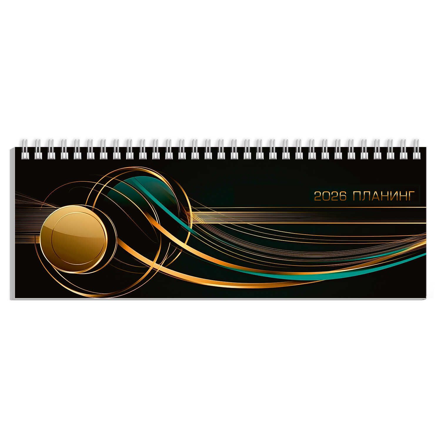 Планинг дат. 2026г 290*100мм 64л., картон, гребень "Золото на черном"+ПОДАРОК